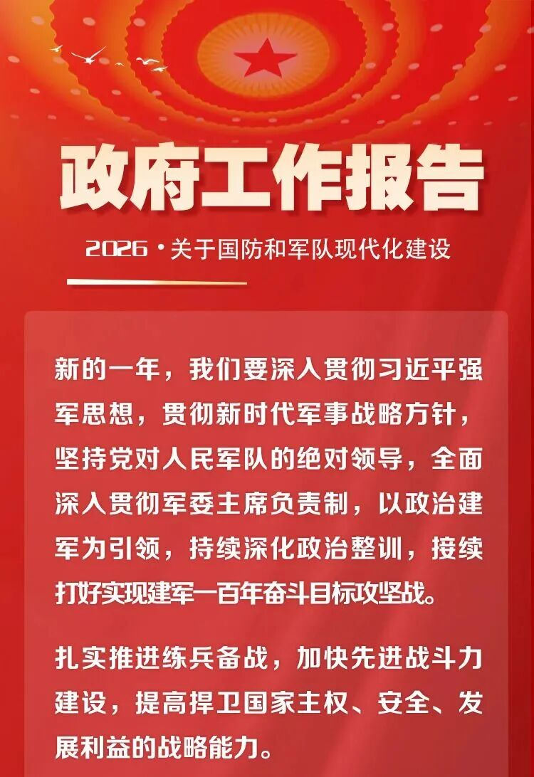 政府工作报告中,这些内容与国防和军队现代化建设息息相关